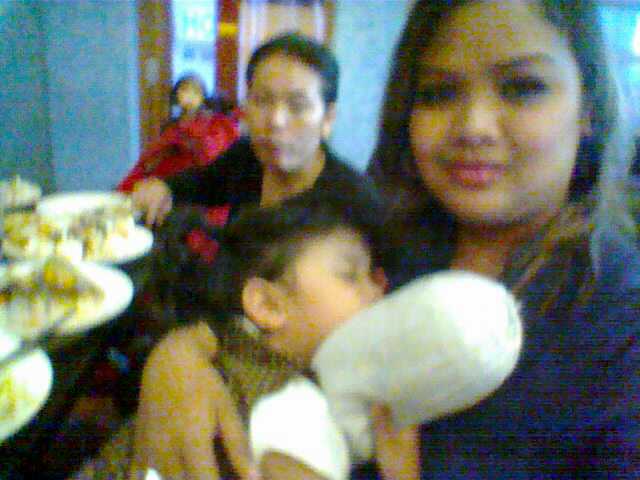 ketika kami bersungguh2 makan, leesya dilamun mimpi....kepenatan yg teramat setelah berendam di dalam kolam...cian anakku ini
