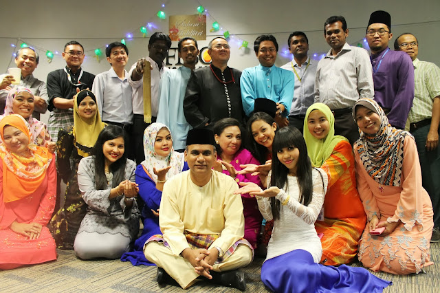 Open house kami mmg sempoi abis! siap ada karaoke bagai! kami ramai2 berjemaah menghias opis dan memasak...curlass!!! anak2 bujang pun dah reti masak rendang dan sambal tumis bagai...sedap2 lak tu! konsep makanan adalah potluck! ada yang gigih masak dan ada jugak yg order kat luar...antara makanan yg ada Satay (order 650 cucuk tapi tak cukup), Kari Kambing, Nasi beriyani, sambal jawa (aku punya), bihun goreng (aku punya), lontong, laksa Kedah, dessert2 (baik sungguh finance dept sedekahkan kami dessert yg byk giler), pulut kuning, sambal tumis ikan bilis, sambal sotong, roti jala dan kari ayam, ayam masak merah, dalca dan mcm2 lagi la...ada 5 bijik meja..semuanya penoh dgn segala makanan.